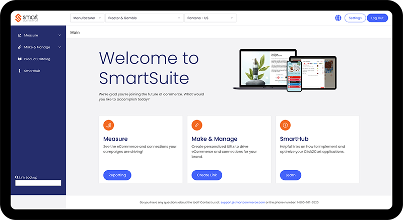 The SmartSuite Dashboard gives clients 24/7 access to metrics, so you can meet your goals faster. Real-time data and insights let you manage the live performance of your campaigns and make changes to retailers, products, redirect pages, and more anytime.